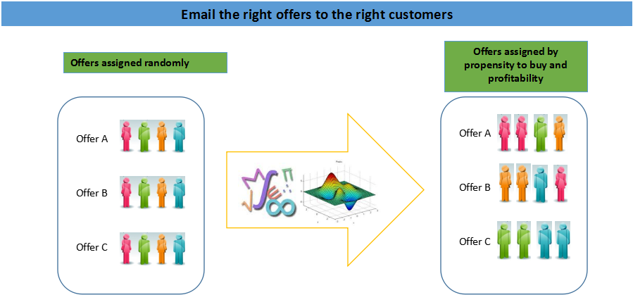 Developed an optimization engine that assigns the offers to high propensity to buy customers and maximize the campaign net revenue