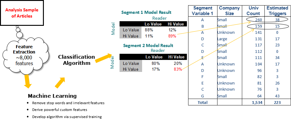 Within minutes, just over 200 leads were chosen for follow up from a pool of over 1,500 articles and press releases, saving countless hours of salesforce head counts and enabling timely sales action